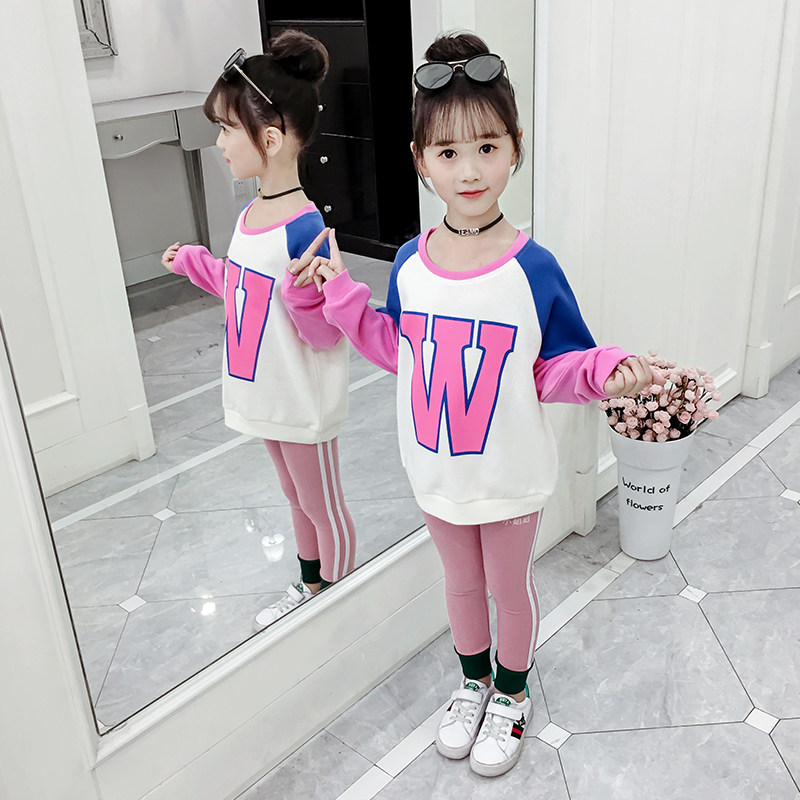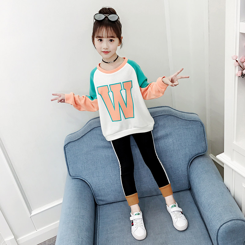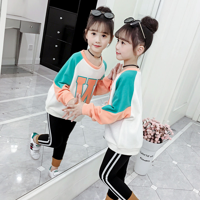 Girl's spring and autumn clothes 2021 new Korean version of the Korean version of the Chinese New Year's children's pure cotton round neckline with a T-shirt with a bottom shirt