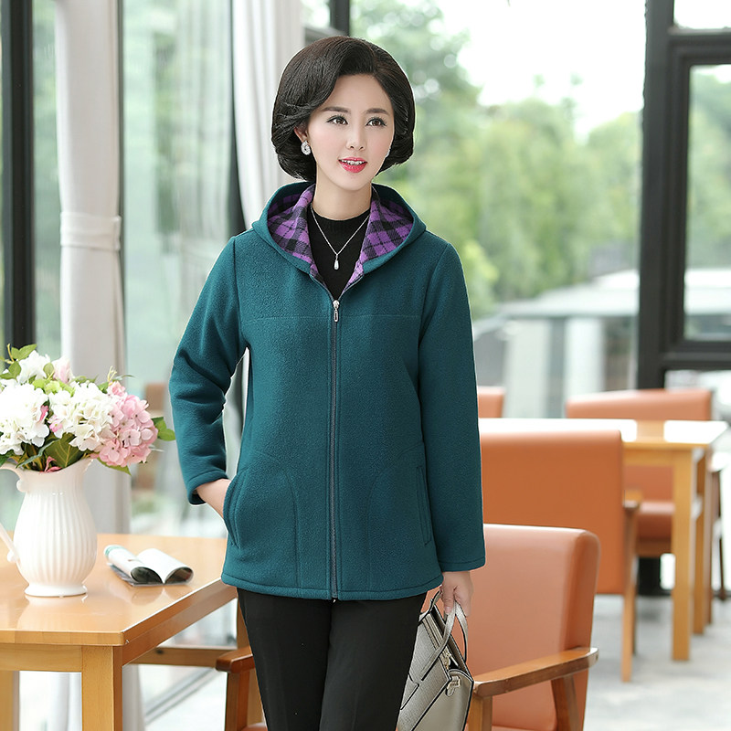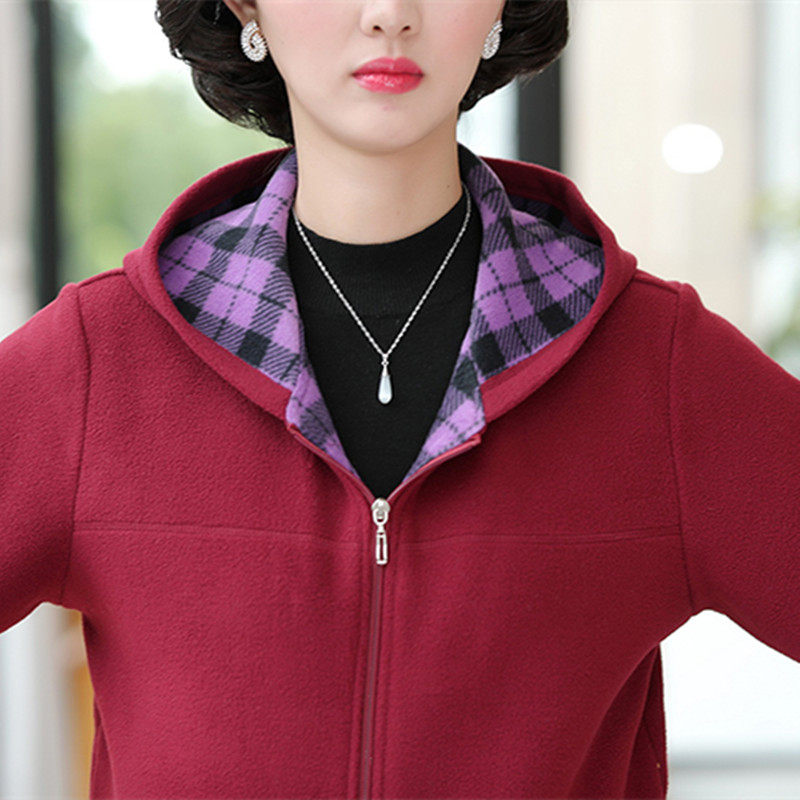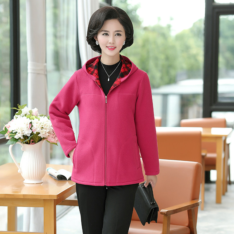 Middle-aged and elderly loose sweater women's winter clothes new large size mother's wear hooded thickened fleece cardigan polar fleece jacket
