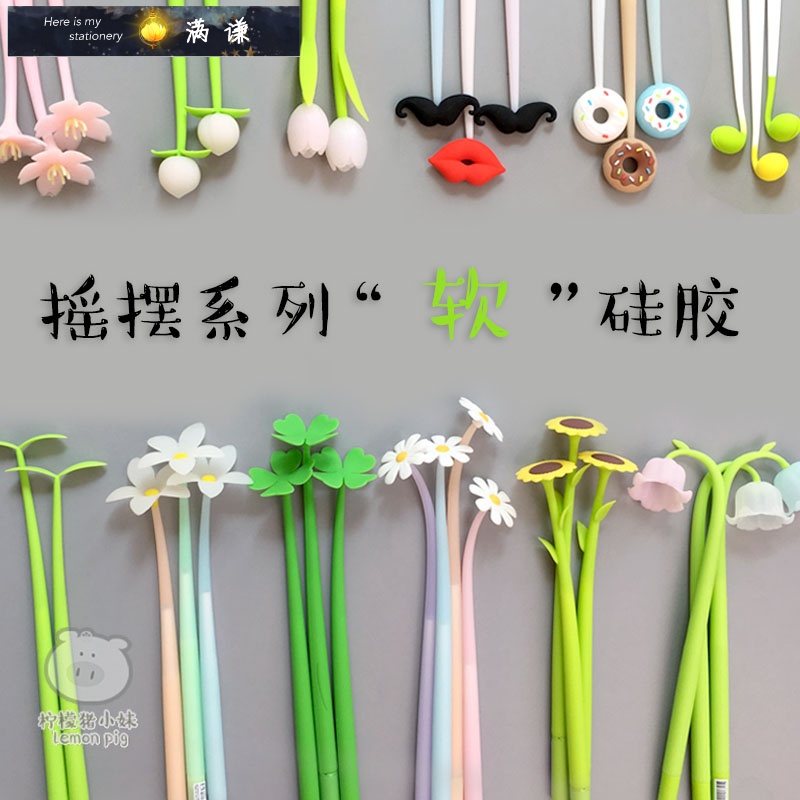 Korean stationery creative cute soft silicone color-changing flower leaf needle tube gel pen student water-based signature pen black