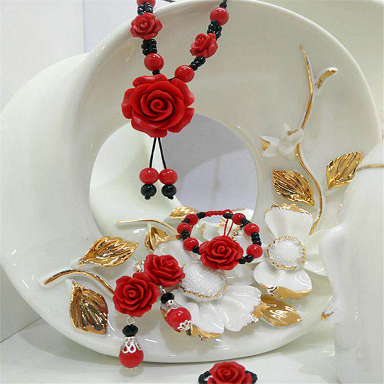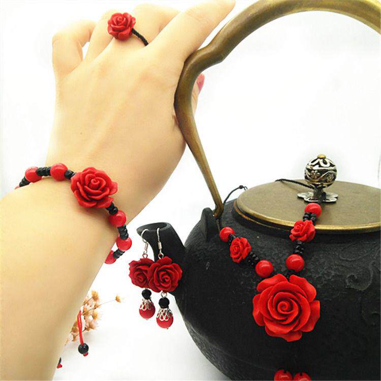 Rose flower earrings (send ring) rose flower hand chisel (send ring) necklace Earrings hand chisel Ring (send anklet) three single-shot rings (send one)