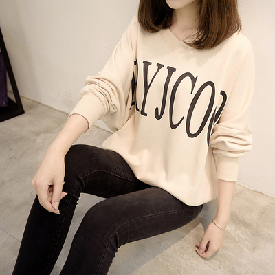 Fat MM Early autumn Korean version Large size women's clothing V neckline head casual blouse Women loose cover batshirts Long sleeves clothes