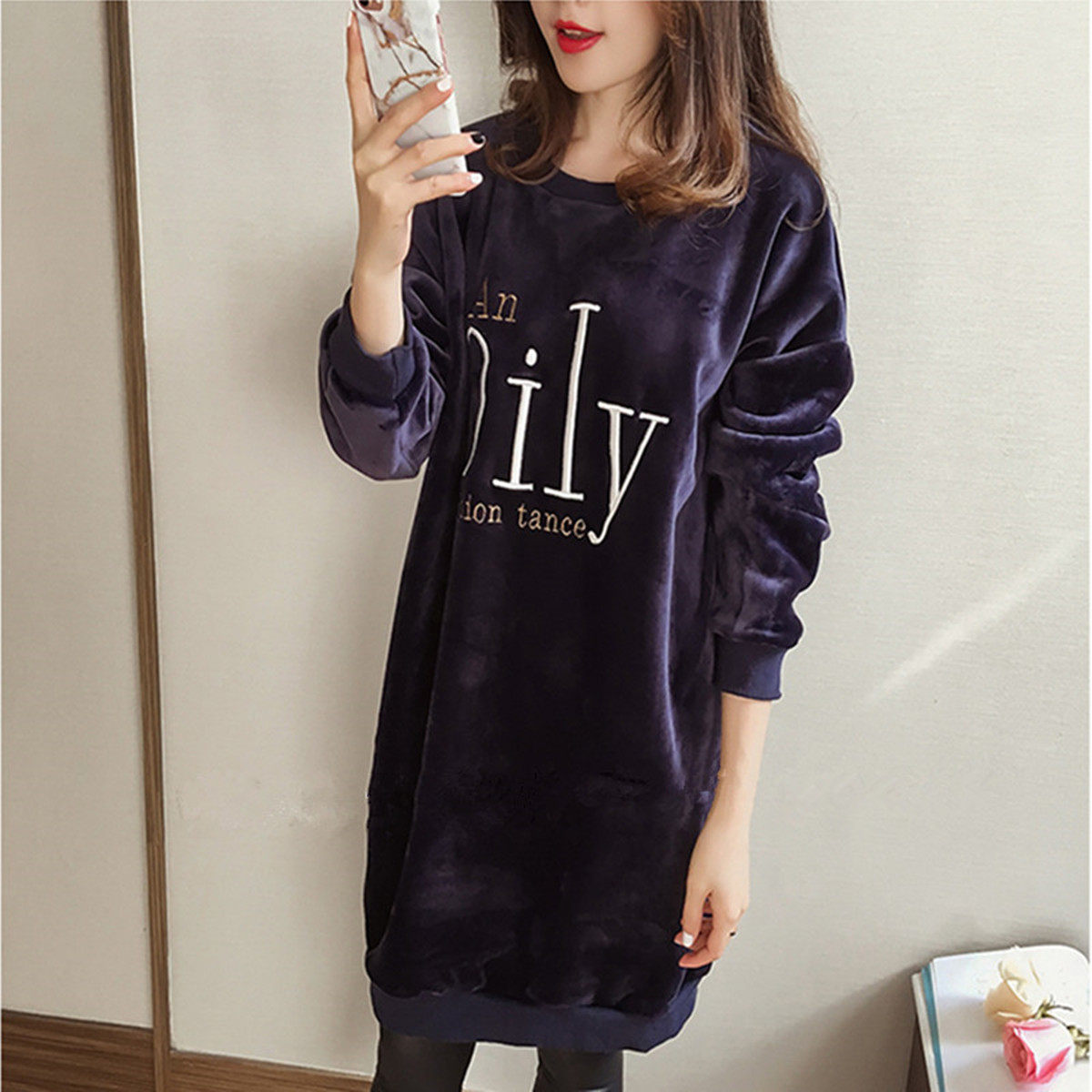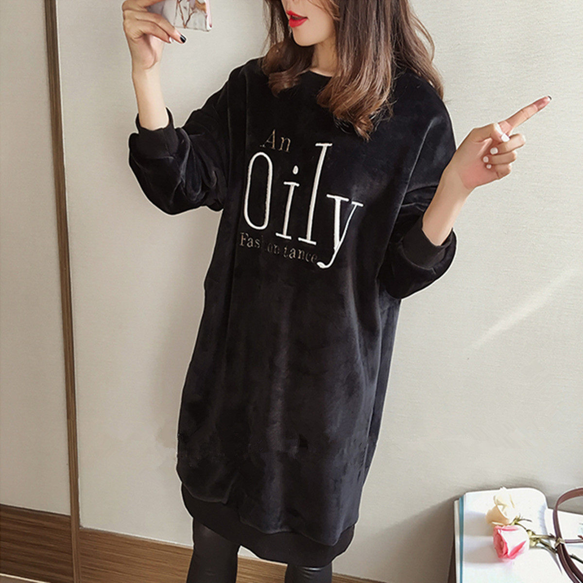 Autumn and winter new large size women's clothing fat sister medium and long version of gold velvet warm and thick cotton T bottoming shirt 200 jin tide