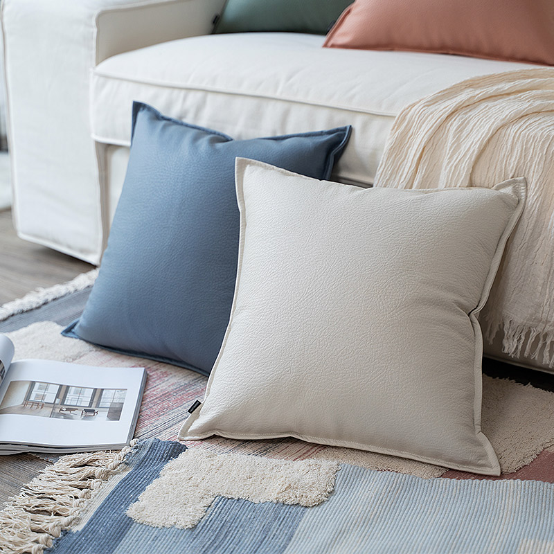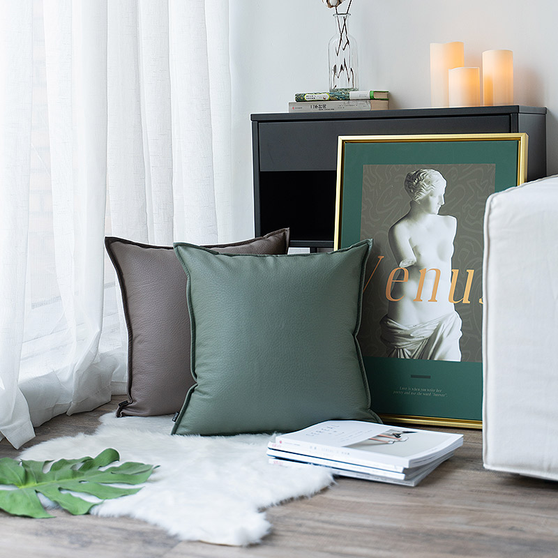 Minimalist pure colour matt leather holding pillow living-room sofa cushions office cortex pu leaning against pillowy oil wax leather holding pillow cover