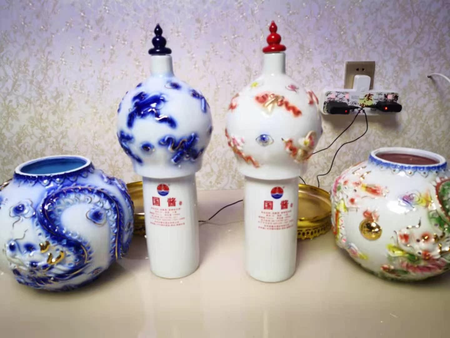 Ceramic wine bottle collection 9200 wine cabinet display seven dragon ball hollow carved porcelain five catties height original lantern height 48