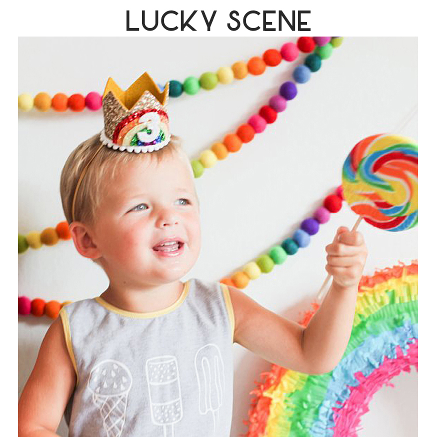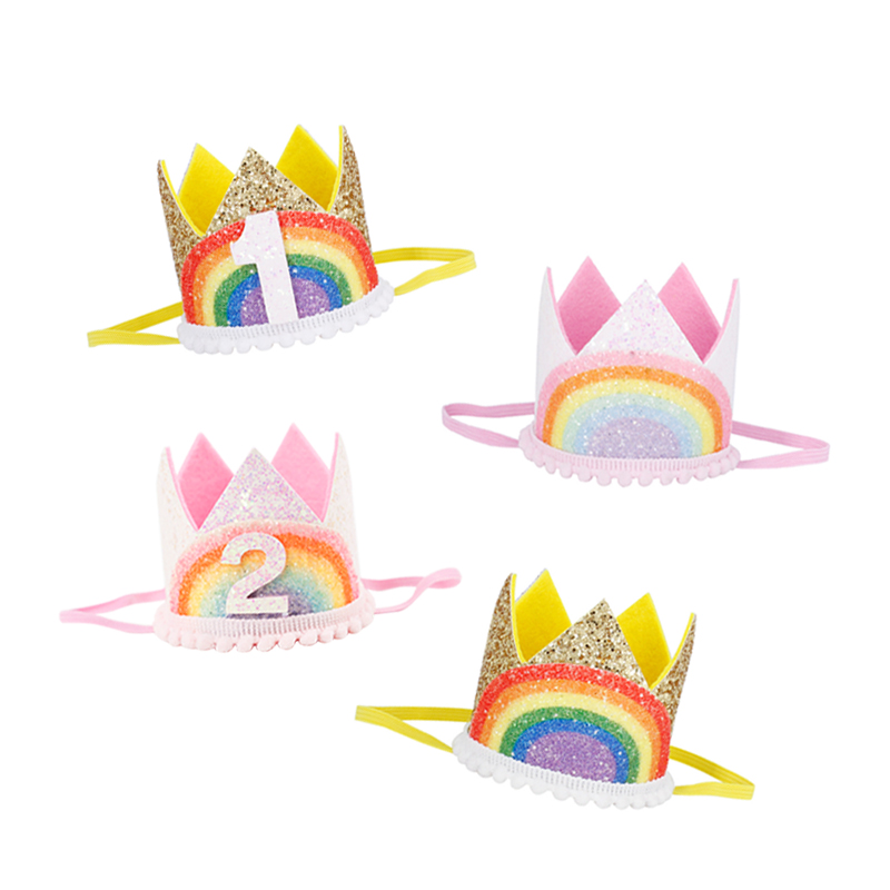 (Auspicious props)Rainbow felt crown lace hairband Baby birthday digital full moon photo party headdress