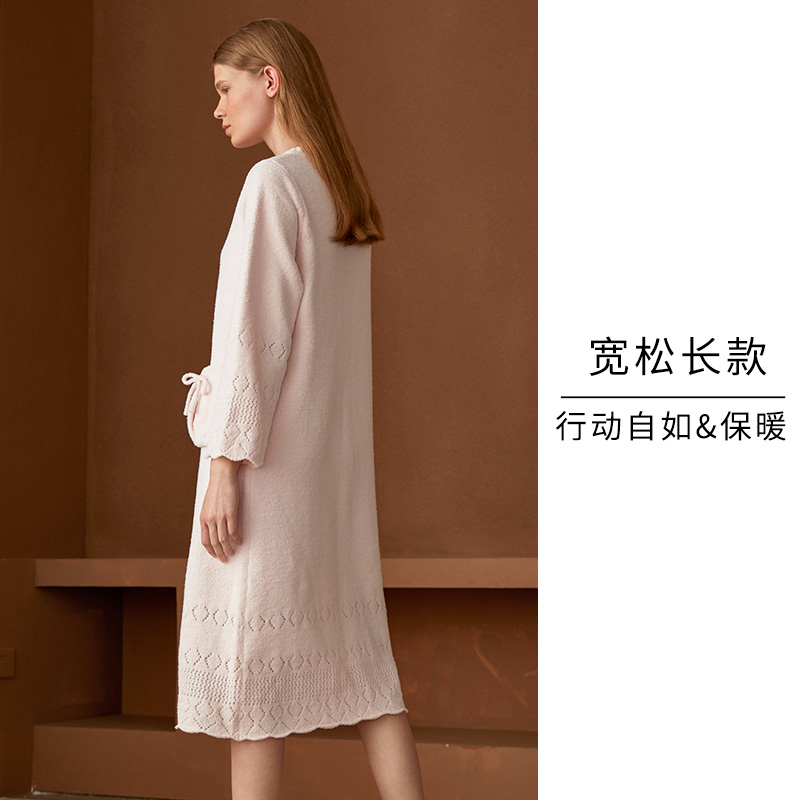 HSIA LONG SLEEVE SLEEPING DRESS EXTRACTABLE WITH CASUAL WARM PAJAMAS FEATHER YARN ROUND COLLAR LOOTERS ' HOME CONSERVED LADY AUTUMN/WINTER