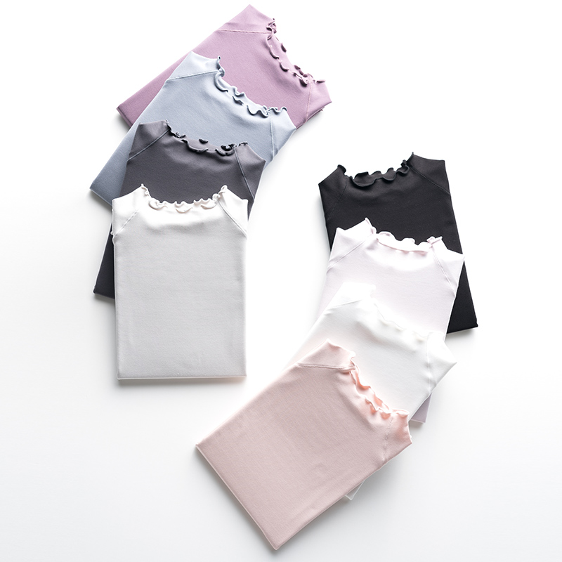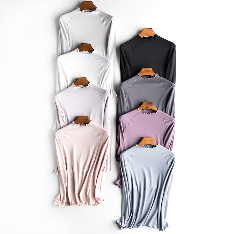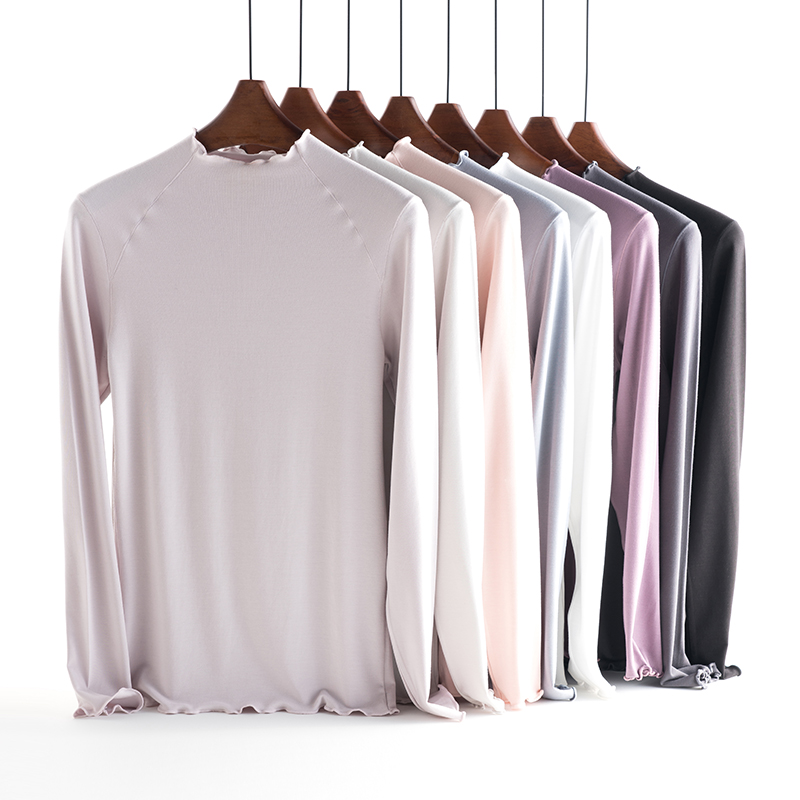 Autumn Modal slim black crew neck fungus edge long sleeves Pure white t-shirt women's base small shirt inner top