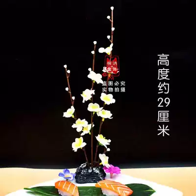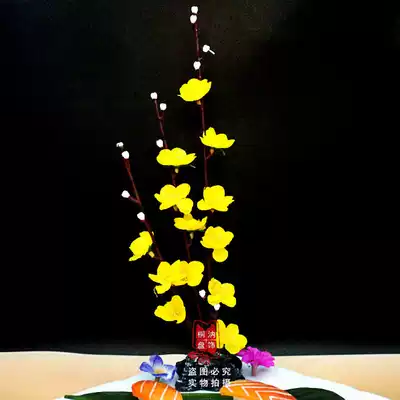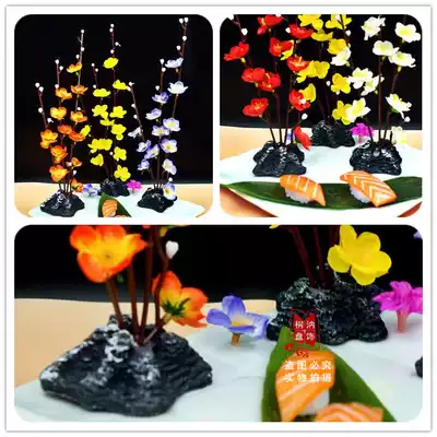 Hotel sashimi seafood plate decorated with plum blossom volcanic stone sushi cuisine around the edge decorated with hotel plate decoration creative flowers and plants