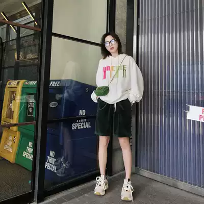 Xiaonian custom casual straight five-point shorts female 2021 New loose high waist black pants slim Joker