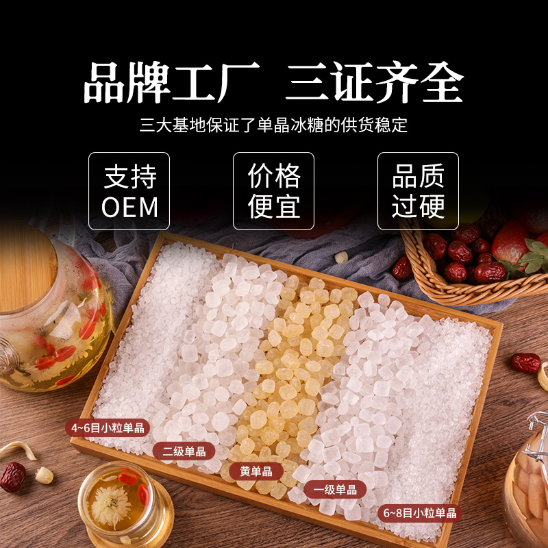 4-6-mesh small grain single crystal icing sugar (grain size 3-6 mm about green bean size) 6-8 mesh small grain single crystal ice sugar (grain size 2-5 mm) secondary single crystal 25 kg bag