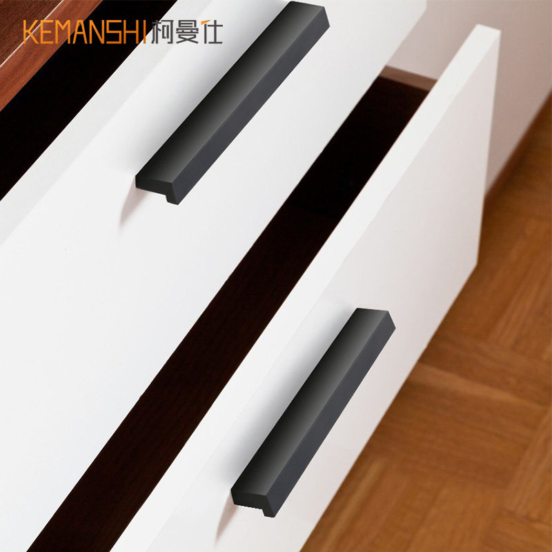 Wardrobe decoration lengthened handle straight strip black minimalist aluminium alloy strip cabinet door handle drawer with small handle
