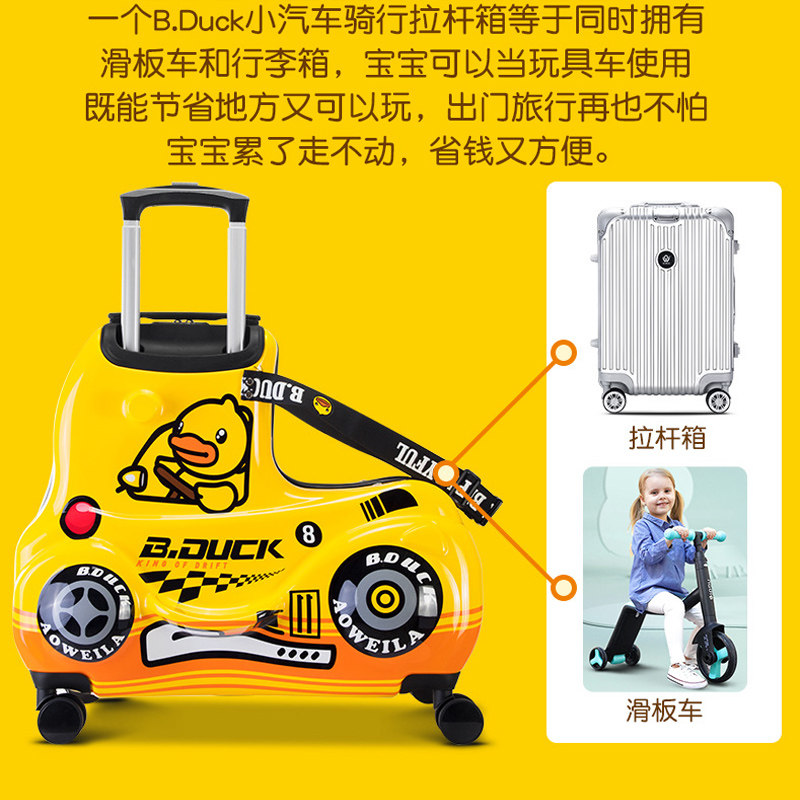B Duck little yellow duck children can sit and ride luggage universal wheel net red baby trolley case 2024 suitcase