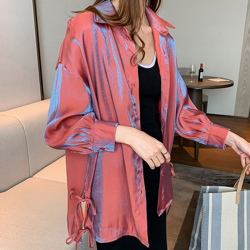 Big size fat sister Mermaid Ji polarized loose long-sleeved shirt with a sense of niche bow tie Western shirt jacket