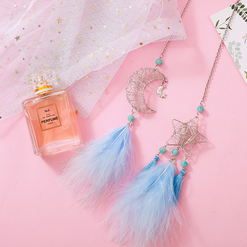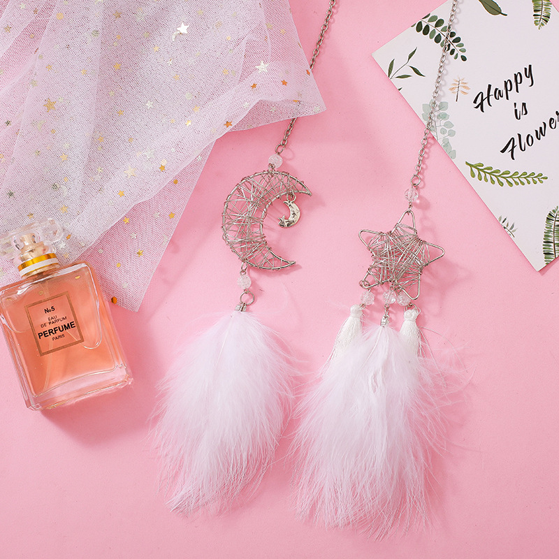 Hollowed-out Stars Moon Feather Pendant Ins Nets Red Girl Hearts Room Handmade Decorations Gift Car Hanging Accessories