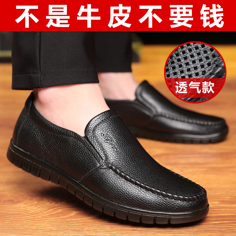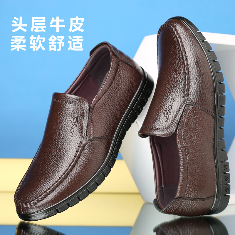 Leather casual leather shoes men's middle-aged and elderly dad shoes 40-50 years old 60 pedal old men's shoes soft bottom non-slip men's shoes