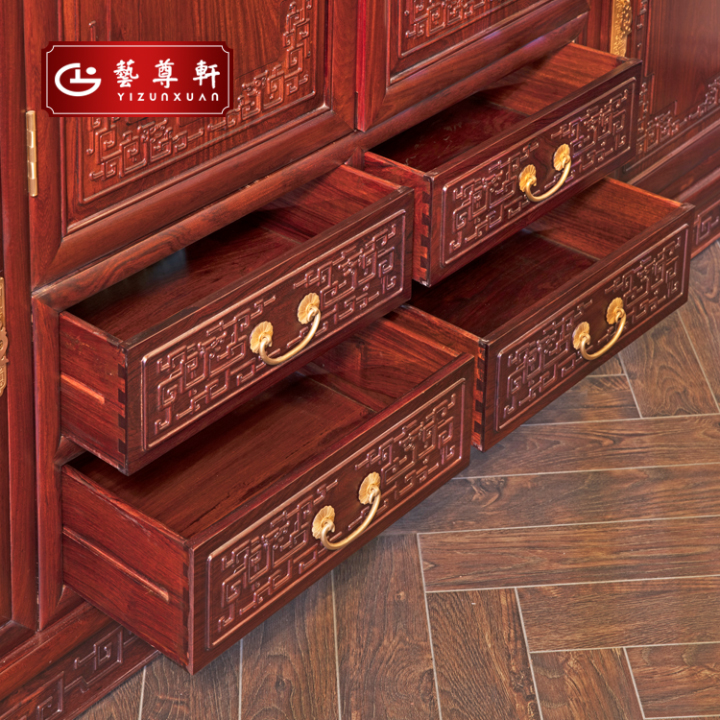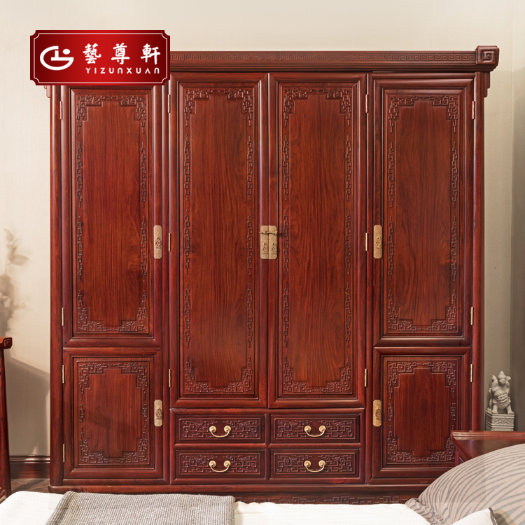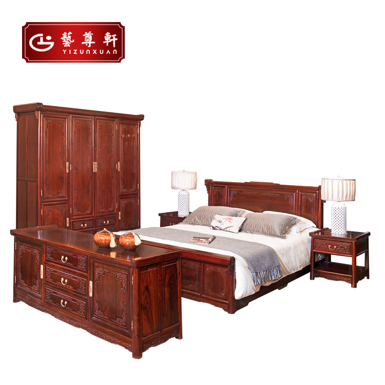 Yizunxuan mahogany furniture good luck accompany bedroom five-piece bed wardrobe TV cabinet master bedroom bedroom complete set of furniture
