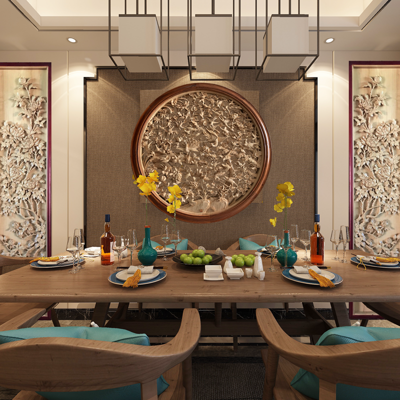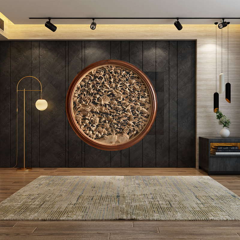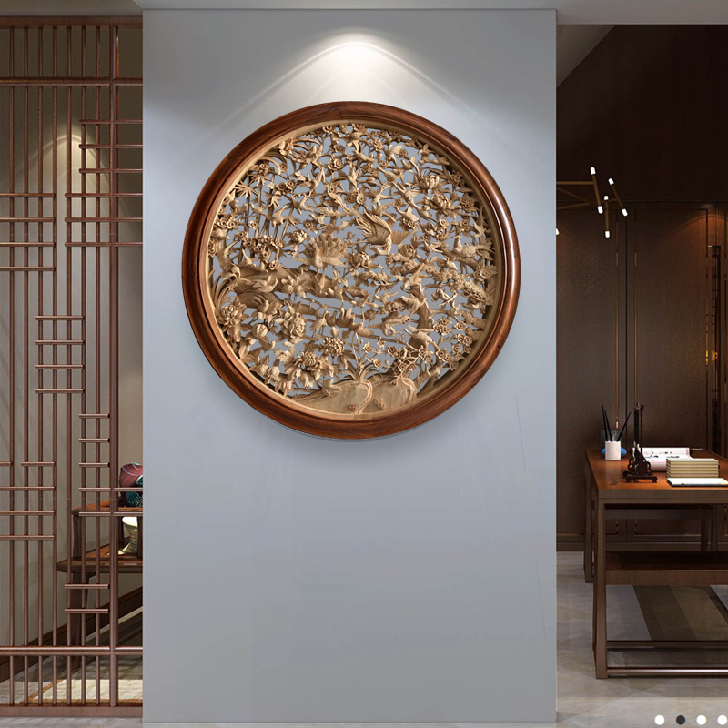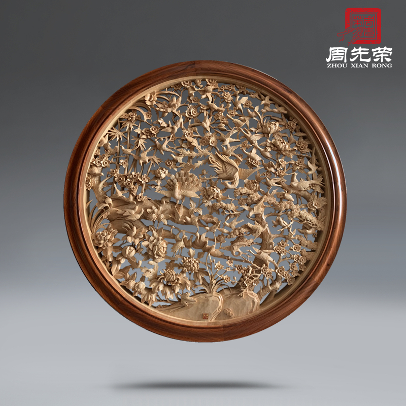 Zhou Xianrong round wall hanging solid wood thickened hand-carved bird chaofeng pendant auspicious rich Dongyang wood carving set