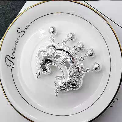 9999 sterling silver lock bag Dragon phoenix blessing foot silver Baby child silver lock pendant Long life lock Child year-old full moon necklace lock