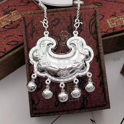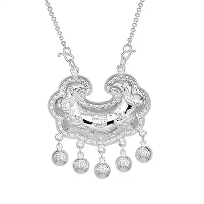 9999 Sterling Silver Dragon Phoenix Fu Silver Lock(28g)9999 Sterling Silver Silver Lock Necklace (37g)