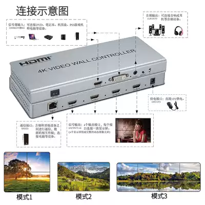 Screen Placker HDMI1 in 4 out LCD TV display 2x2 movie splicing processor DVI HD image stitching controller multi-screen 1x4 TV Wall picture splicing processor 1080p