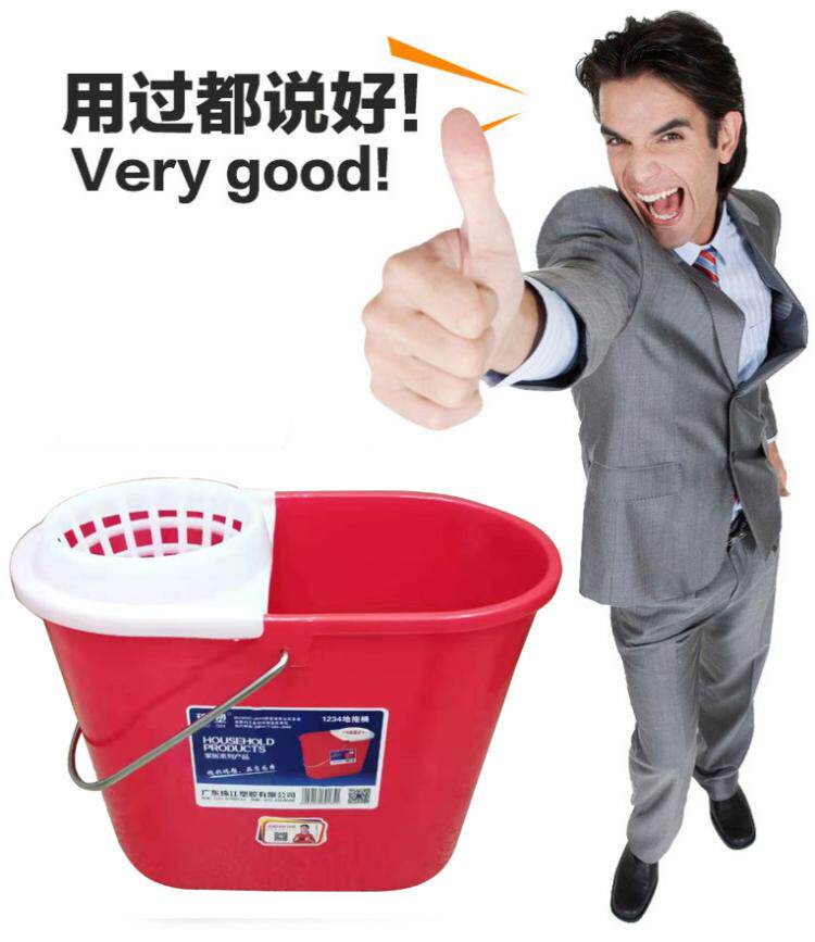 The Pearl River thickens home old style drag barrel red plastic simple mop barrel hand pressure wringing dry mop barrel