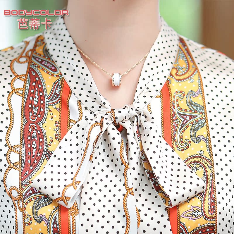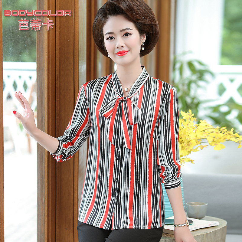 2021 New Silk Silk Mama sends 40 - 50 years old middle - aged elderly sleeve spring dress T - shirt