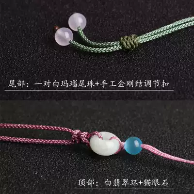 Fine Milan rope white jade ring-pink rope thin Milan rope white jade ring-green rope