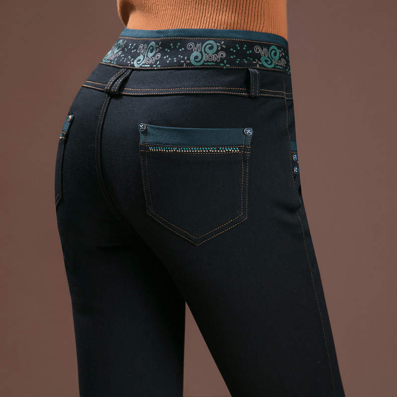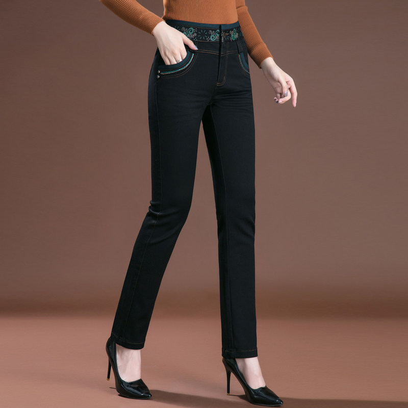 2019 autumn new middle-aged mother's pants straight pants large size high waist loose jeans ladies long pants spring and autumn