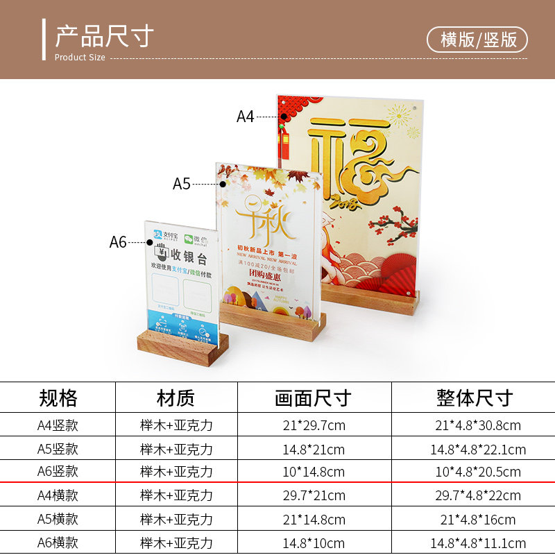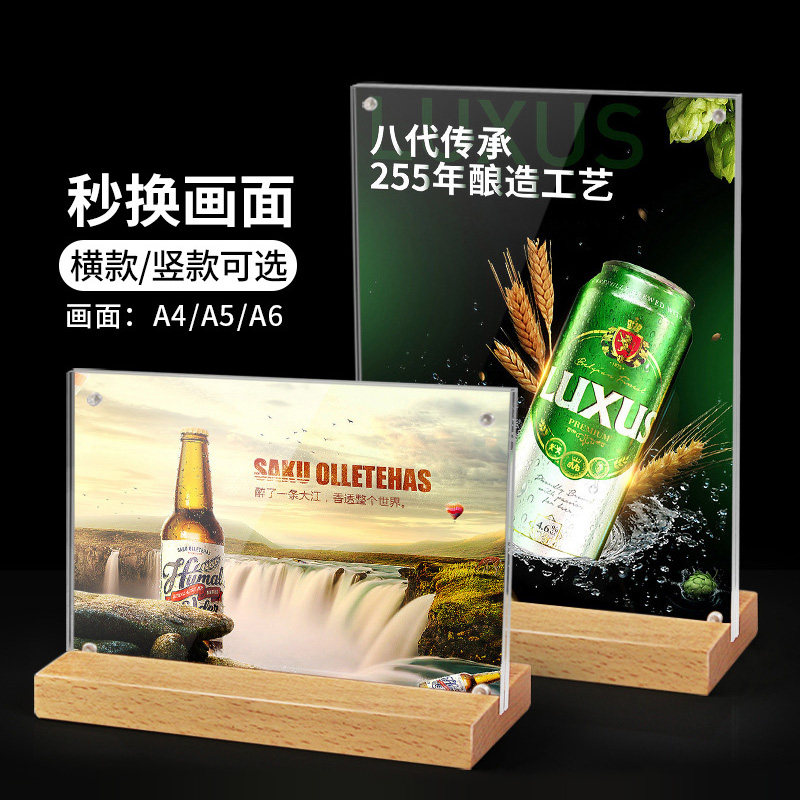 A5 log with strong magnetic acrylic table sign A4 display card wooden table plate standing signs placard milk tea shop price tag