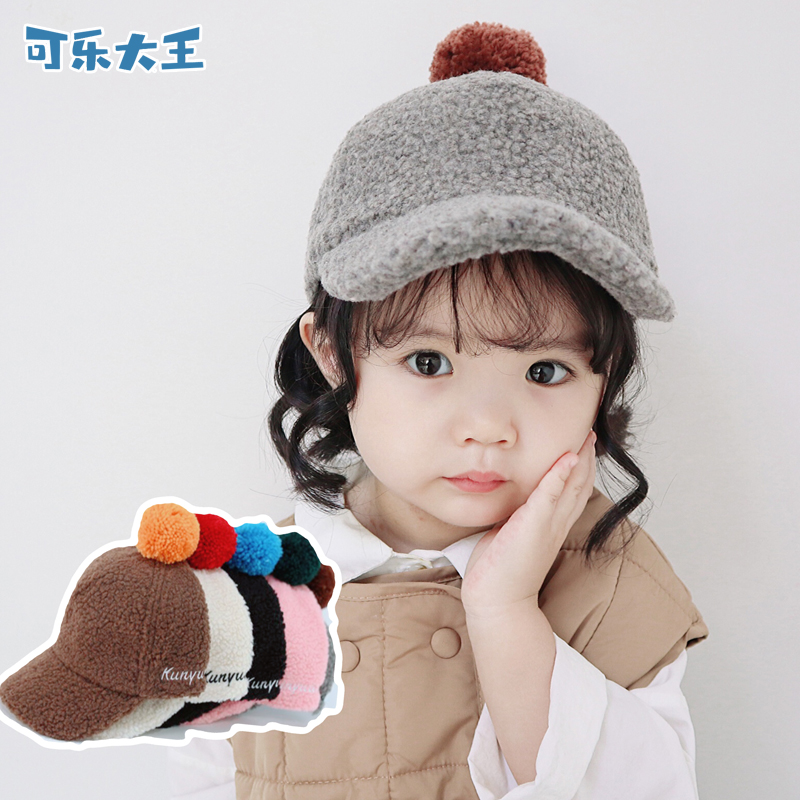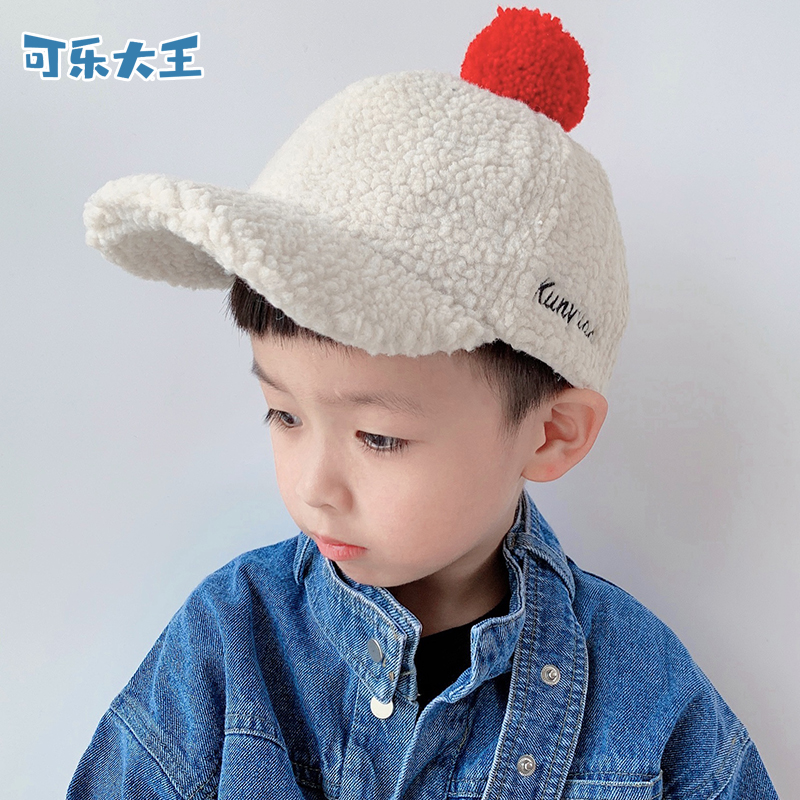 Autumn and Winter Children's cap warm hat board boys and girls baby baseball cap lamb wool hat Korean version of tide