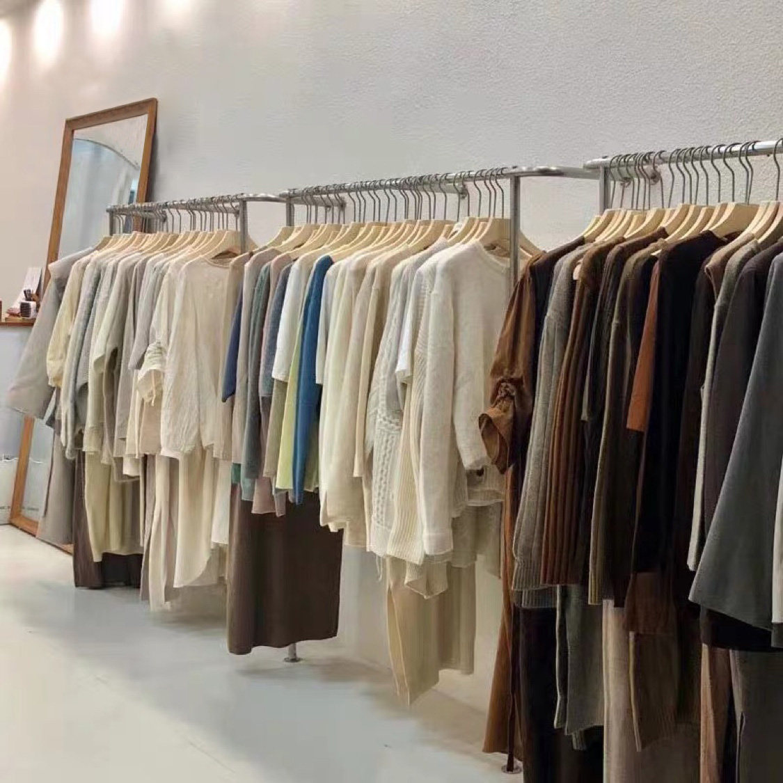 Clothing store display stand Floor-to-ceiling wall hangers Gold stainless steel women's clothing shelves brushed silver clothes hanging side