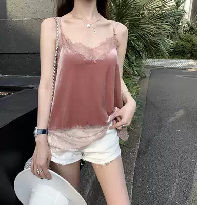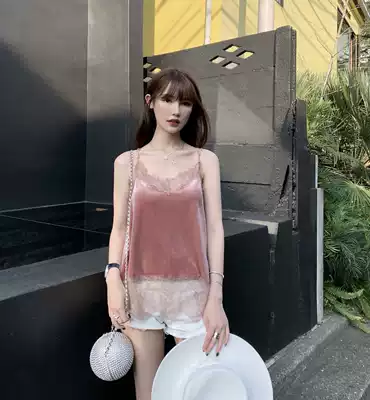 CHICYOU PURE and horny sweet girl Touching pink velvet LACE V-neck SEXY suspenders
