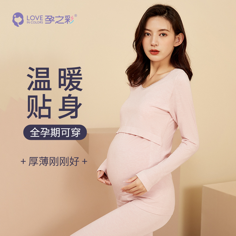 Pregnancy Color Pregnant Women Autumn and Winter Home Clothing Set Cotton Postpartum Adjustable Pajamas and Autumn Clothes Two-piece Set