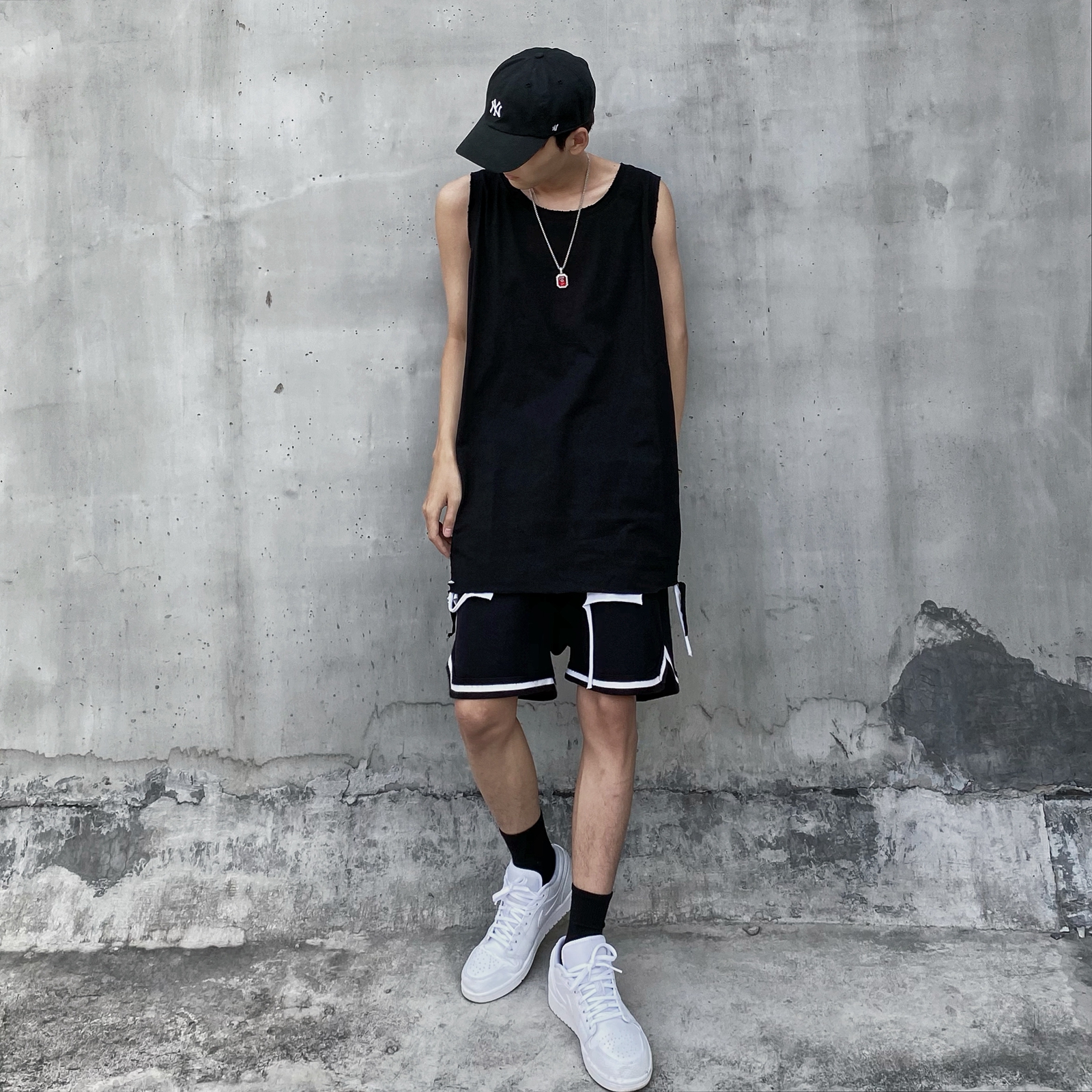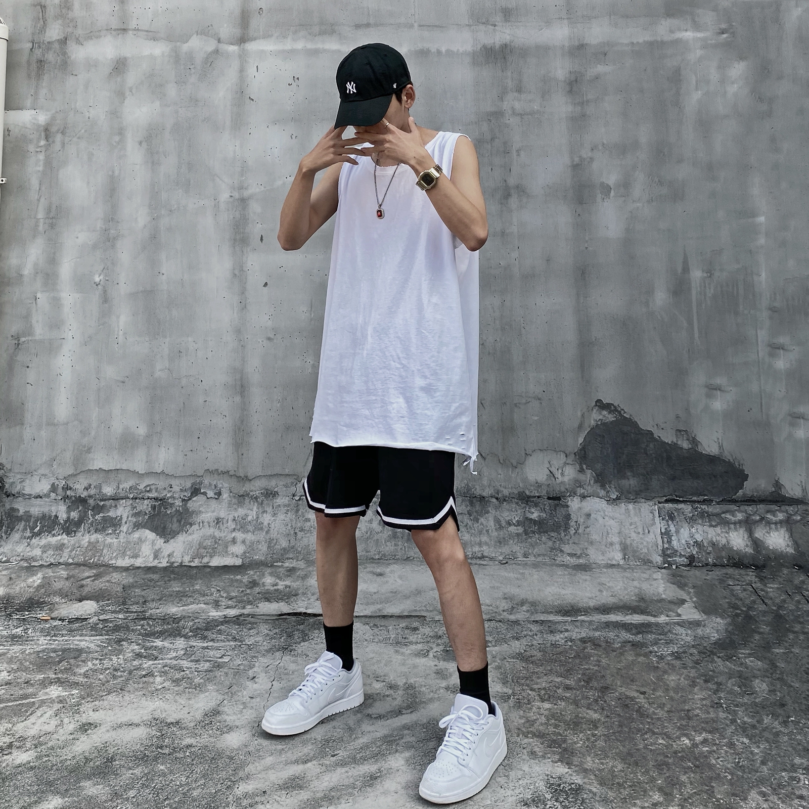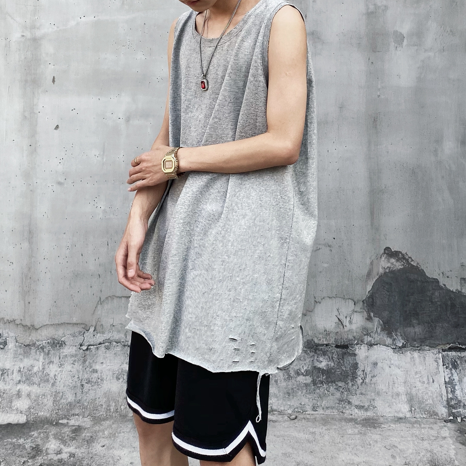 ins High Street Summer Bottoms Loose Vest Men's Down Swing Hole Tide Cards 100 Hitch Pure Cotton Hip Hop Vandal Sleeveless T-shirt