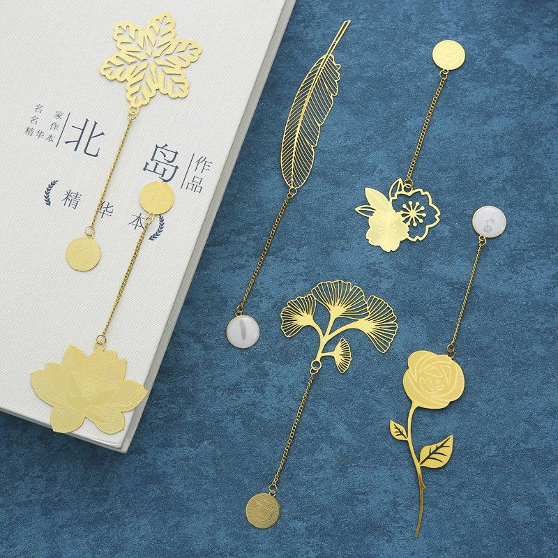 Exquisite hollow creative brass metal leaf vein bookmark Forbidden City Wenchuang small gift classical Chinese style lotus small fresh student simple and exquisite cute antique business gift custom lettering