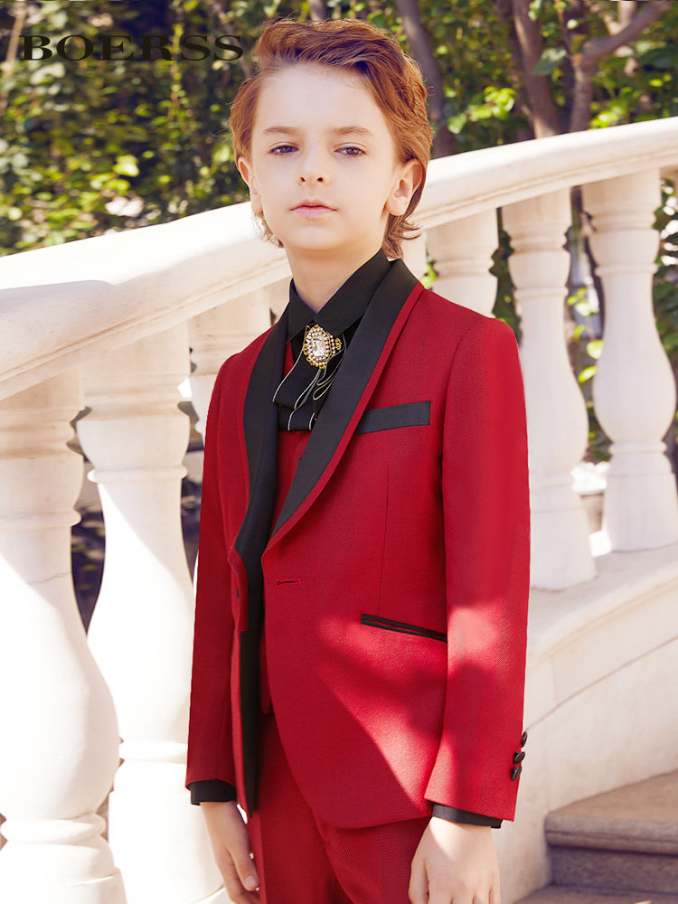Red 3-piece set (top pants vest) red 5-piece set (top pants vest black shirt collar flower) red 5-piece set (top pants vest white shirt collar flower