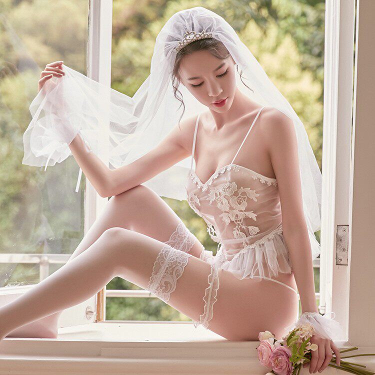 White sexy bride passion suit Midnight charm uniform female show three-point upskirt tight perspective suit