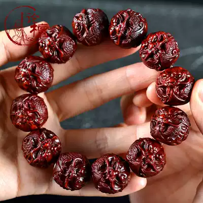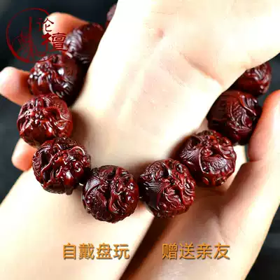 On the sandalwood Indian small leaf red sandalwood hand string Dragon Ball Golden Star Wen play men's hand sandalwood red Beed hand string