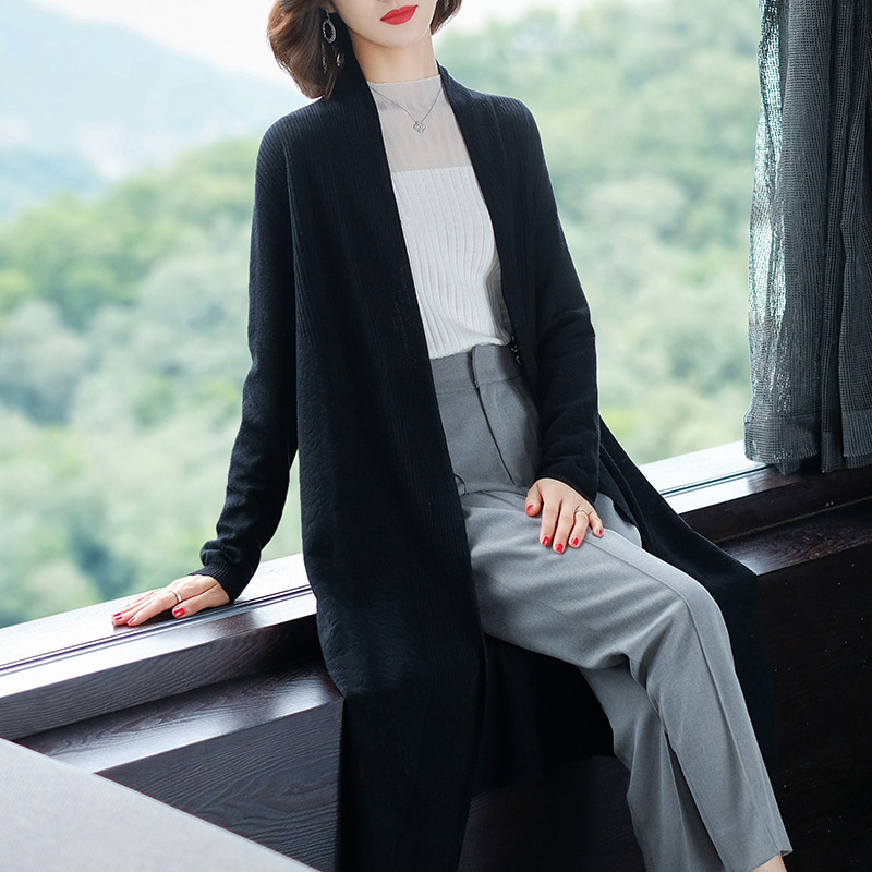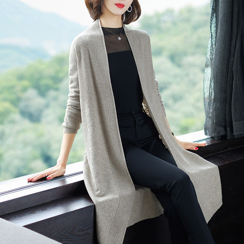 Knitted cardigan medium and long version ladies autumn 2022 new thin section long version outer sweater coat spring and autumn outer drape