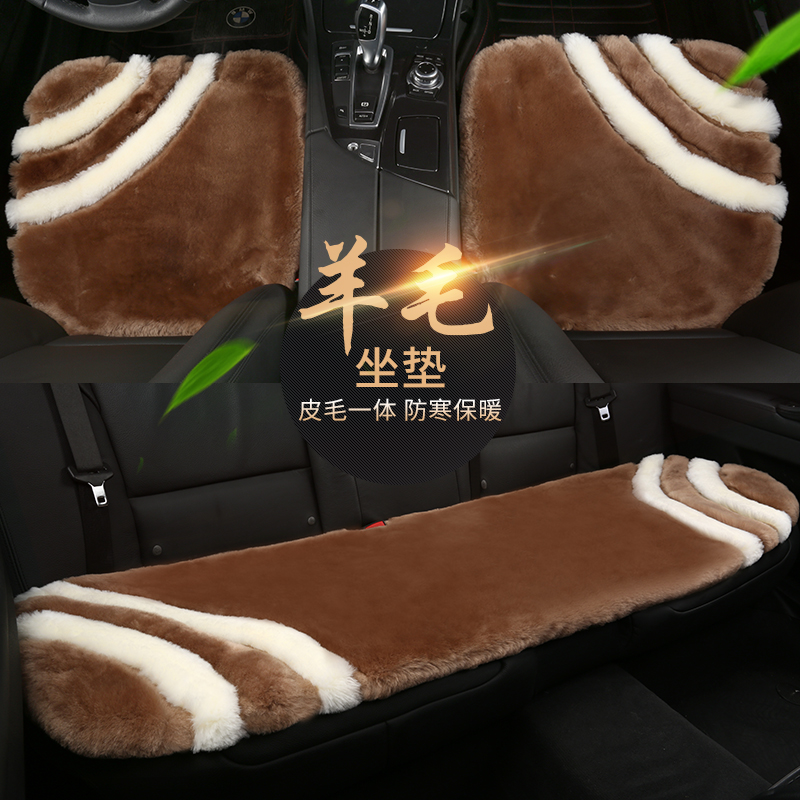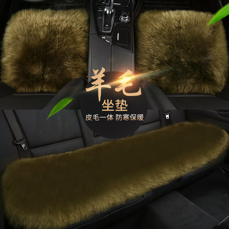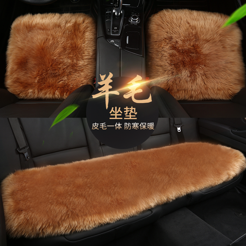 Pure wool car seat cushion three-piece set of sheep shearling new winter seat cushion long hair short plush without backrest? Chair cushion