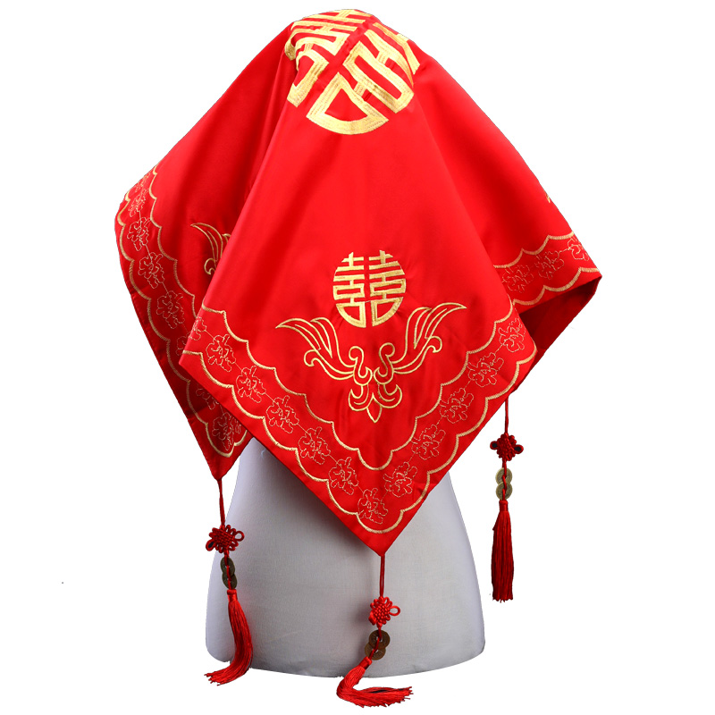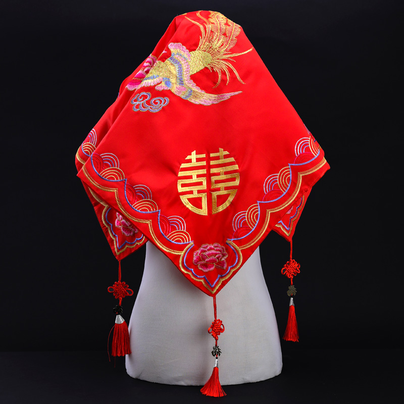 Red hijab bride festive Chinese style mesh thin wedding tassel Xiuhe clothing translucent hijab Xiuhe high-end