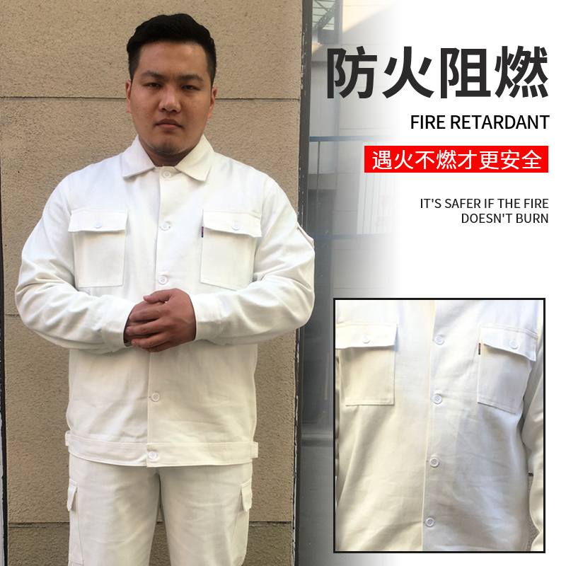 Refined white canvas welding work clothes suit men's pure cotton wear-resistant flame retardant anti-scalding fire flower labor protection protection high temperature resistance