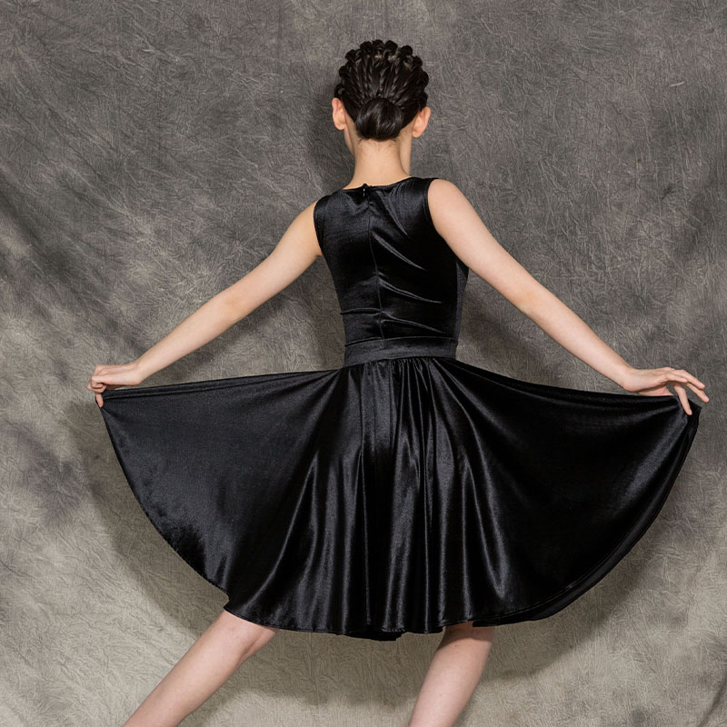 Winnie the new fish-free bone large skirt hem Latin dance suit girl black training test suit two-piece two-piece set
