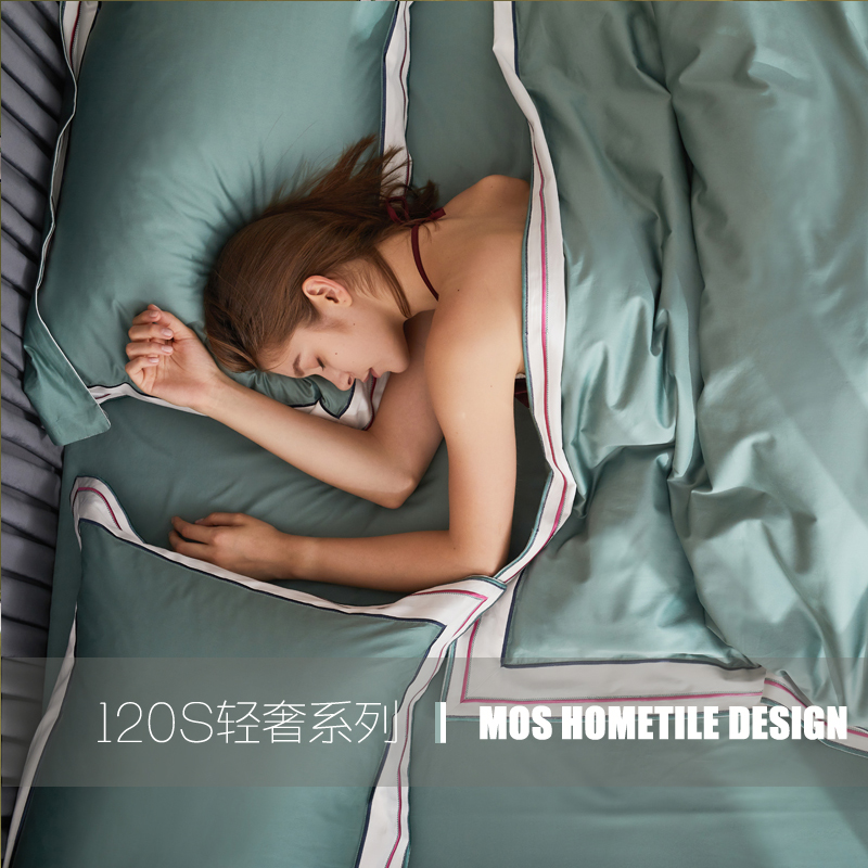 High end light luxurious 120 sea island cotton four sets pure cotton gon satin long suede cotton villa-like interbed bedding