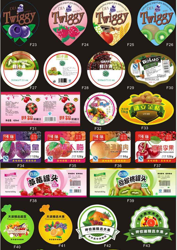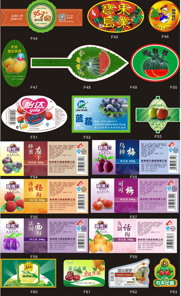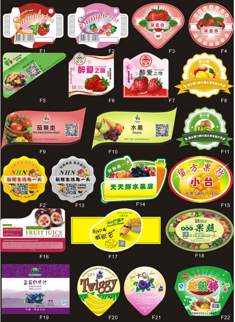 Fruit label Fresh fruit cut fishing sticker platter Freshly squeezed juice Corn juice Big cherry sticker Fruit label boutique