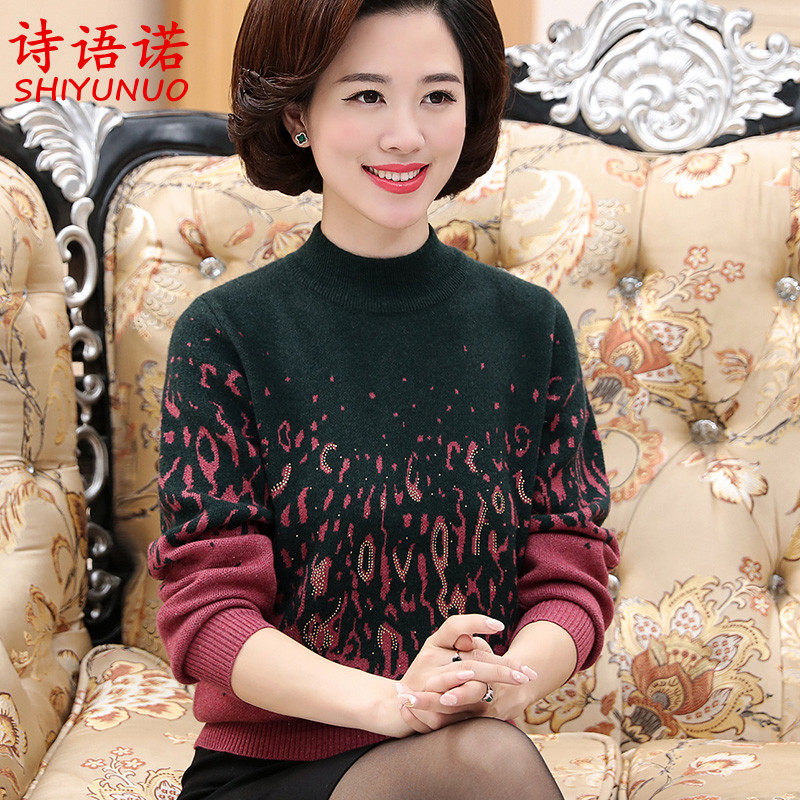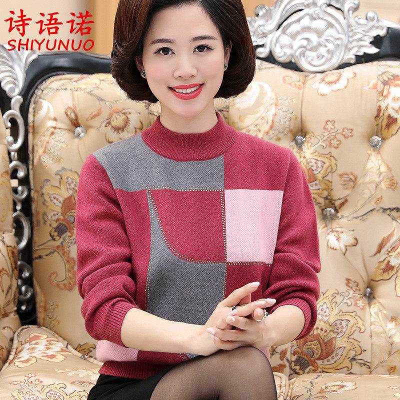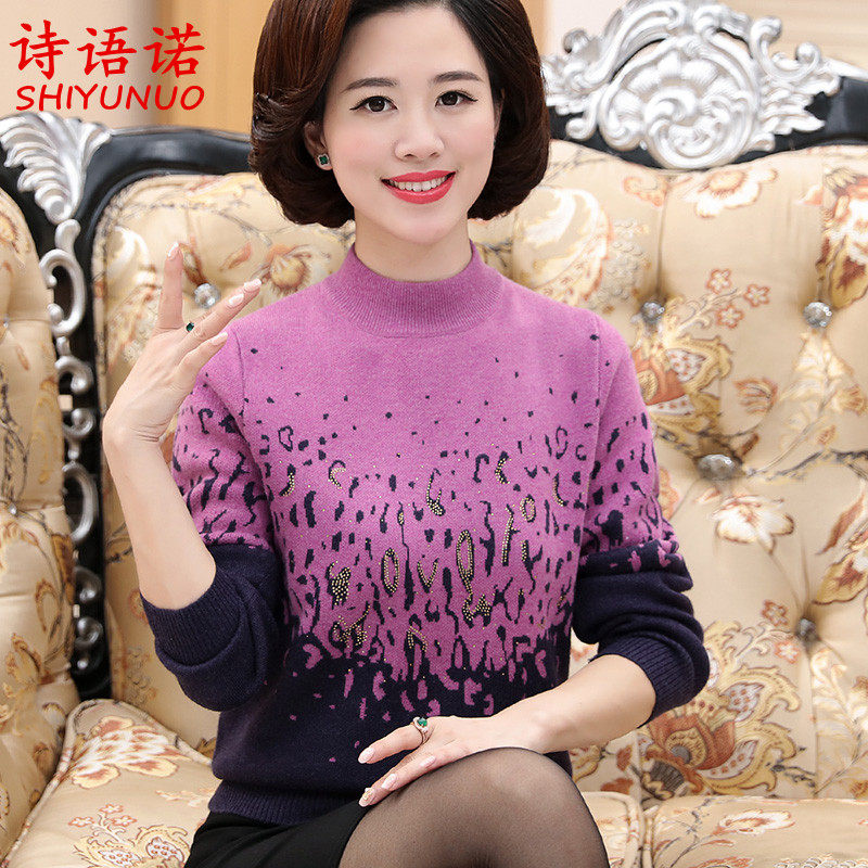 Middle-aged women's clothing in autumn and winter clothes thick sweater mommy clothes large grandma wearing knitting blouse