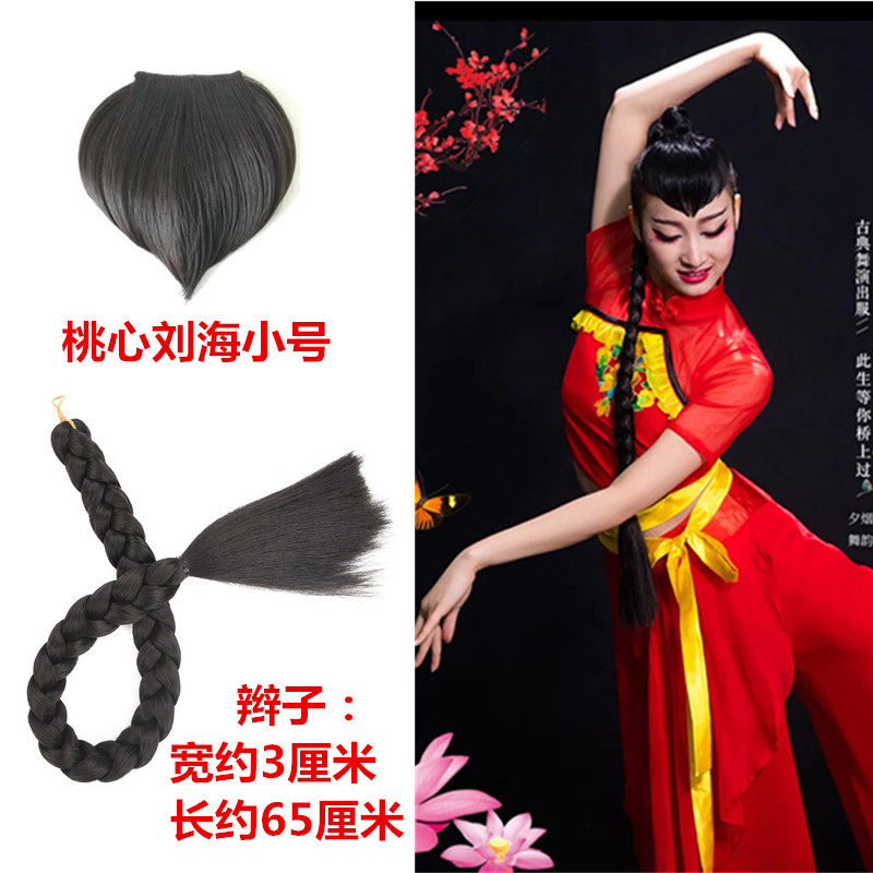 Ancient clothes wig three strands of hemp flower show and long braid with peach heart-shaped Liu Hai Children's performance of the Republic of China Dance-Taobao
