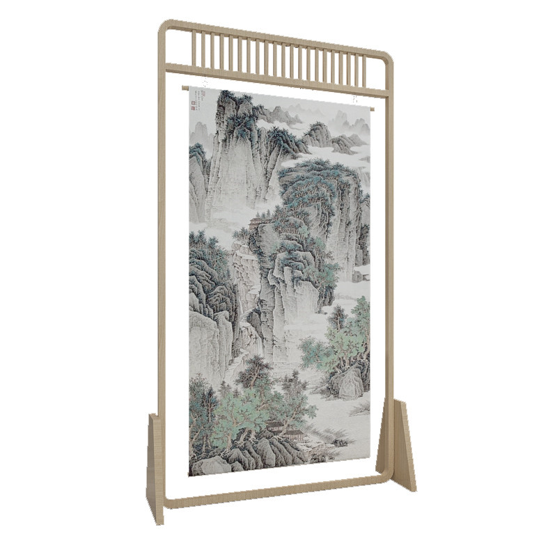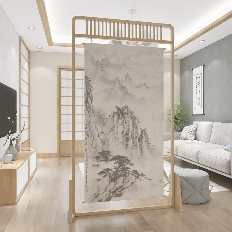 New Chinese solid wood modern minimalist light extravagant screen partition Xuanguan decoration Shielded Character Painting Mobile Semi-Permeable Yarn Holder Screen