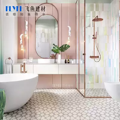 Nordic flower stars gray tiles simple modern kitchen powder room balcony porch toilet non-slip floor tiles