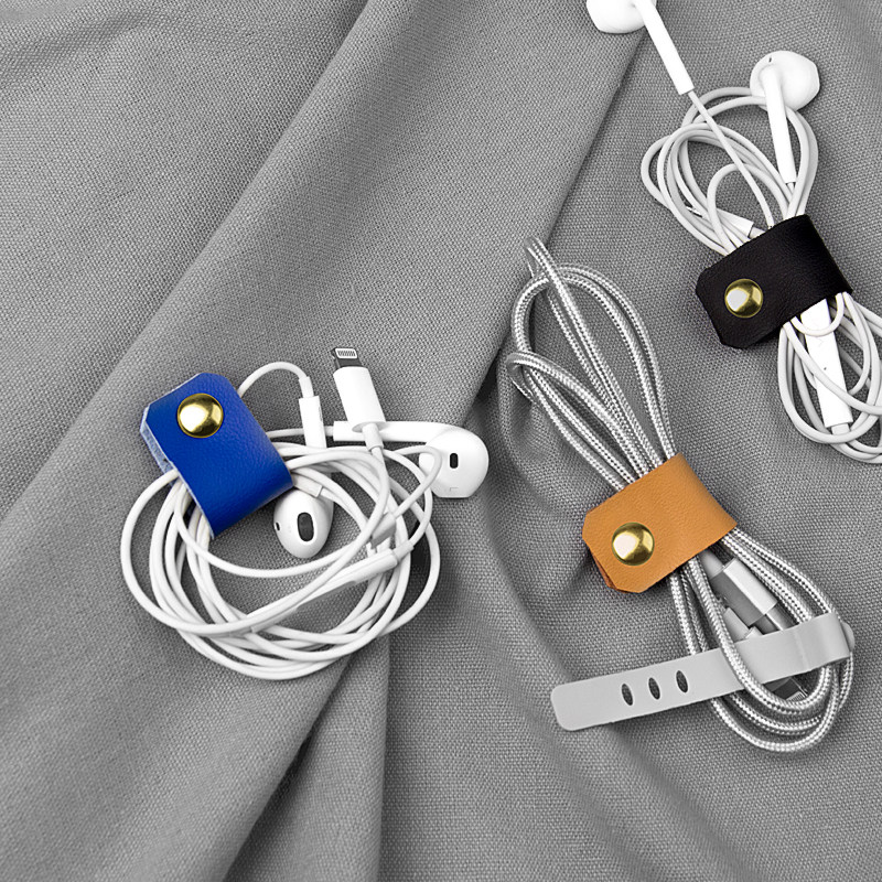 Worthy of environmental protection leather data cable storage buckle binding device mobile phone earphone cable storage winding device 3 packs
